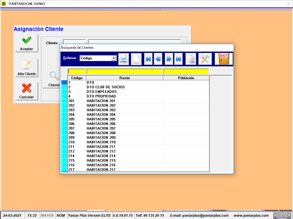- Acceso desde recepción a consumiciones de las habitaciones.